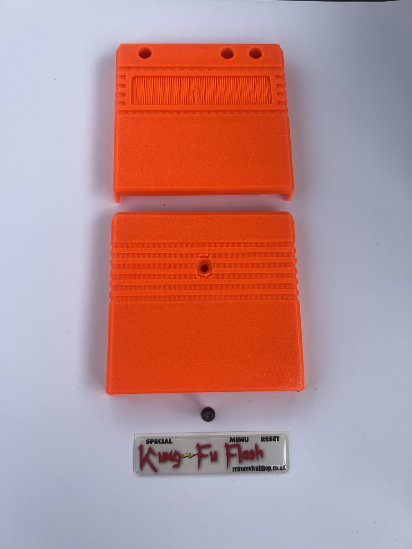 These are complete, requiring you to only put your PCB in the case, add the chosen buttons, screw closed with the included screw. Finally add your deluxe Kung Fu Flash Badge to the space on the front.